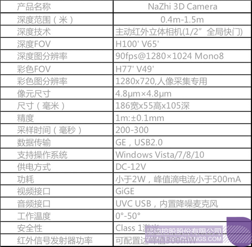 小型化光學(xué)3D全臉相機(jī)性能參數(shù)