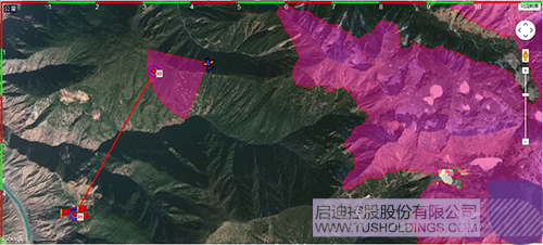 圖中右邊紅色區(qū)域?yàn)樯礁叱^4200米的區(qū)域,為避免撞山不能靠近此區(qū)域。
