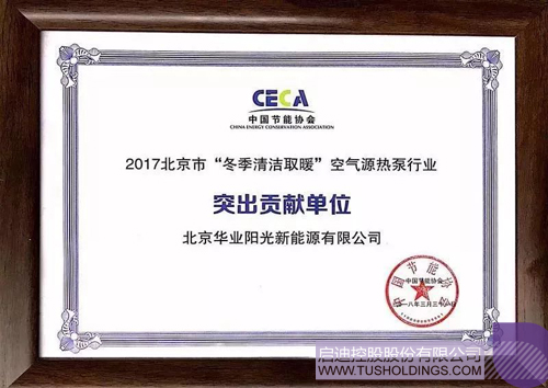 2018年3月, 2017北京市“冬季清潔取暖”空氣源熱泵行業總結表彰會在京隆重舉行,華業陽光成為首批榮獲“2017年北京市‘冬季清潔取暖’突出貢獻單位”稱號的企業。