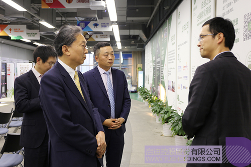 座談前,鳩山由紀夫參觀了啟迪之星孵化器和啟迪控股數字展廳,詳細了解啟迪獨特的創新孵化模式、“科技園區、科技實業、科技金融”三位一體業務模式以及啟迪在環保領域的布局發展情況?;趩⒌现浅晒Φ倪\營經驗和龐大的創新網絡,鳩山由紀夫表示歡迎啟迪之星去日本落戶。